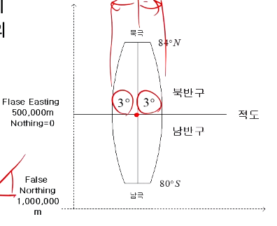 - 남반구는 X(S)=10,000,000m, Y(E)=500,000m를 사용