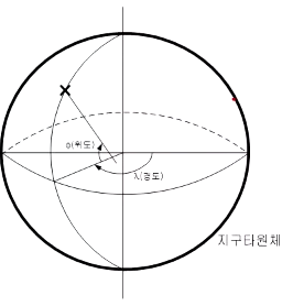 - 경도 : 기준 자오선으로 부터 동서방향 회전각을 의미함