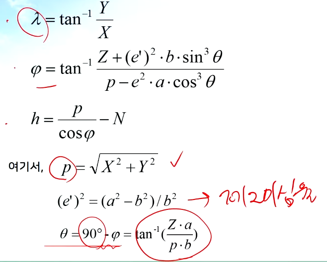 3.8. 지심좌표(X, Y, Z) → 측지좌표 (φ, λ, h)로 변환
