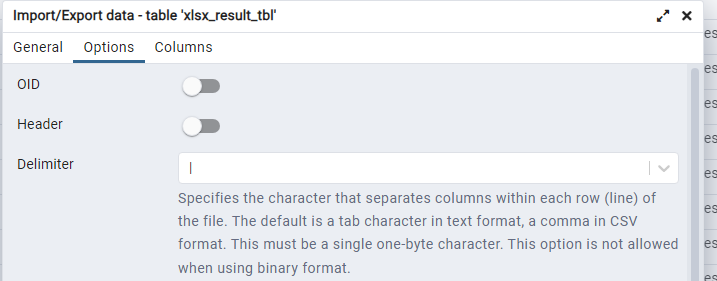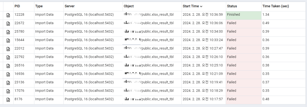 pgAdmin에서도 import할 때 Encoding을 UTF8로 해주면~~~~