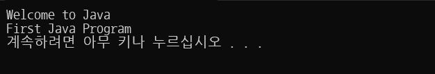 public, static, void, String[], args가 뭔지는 차차 배울겨